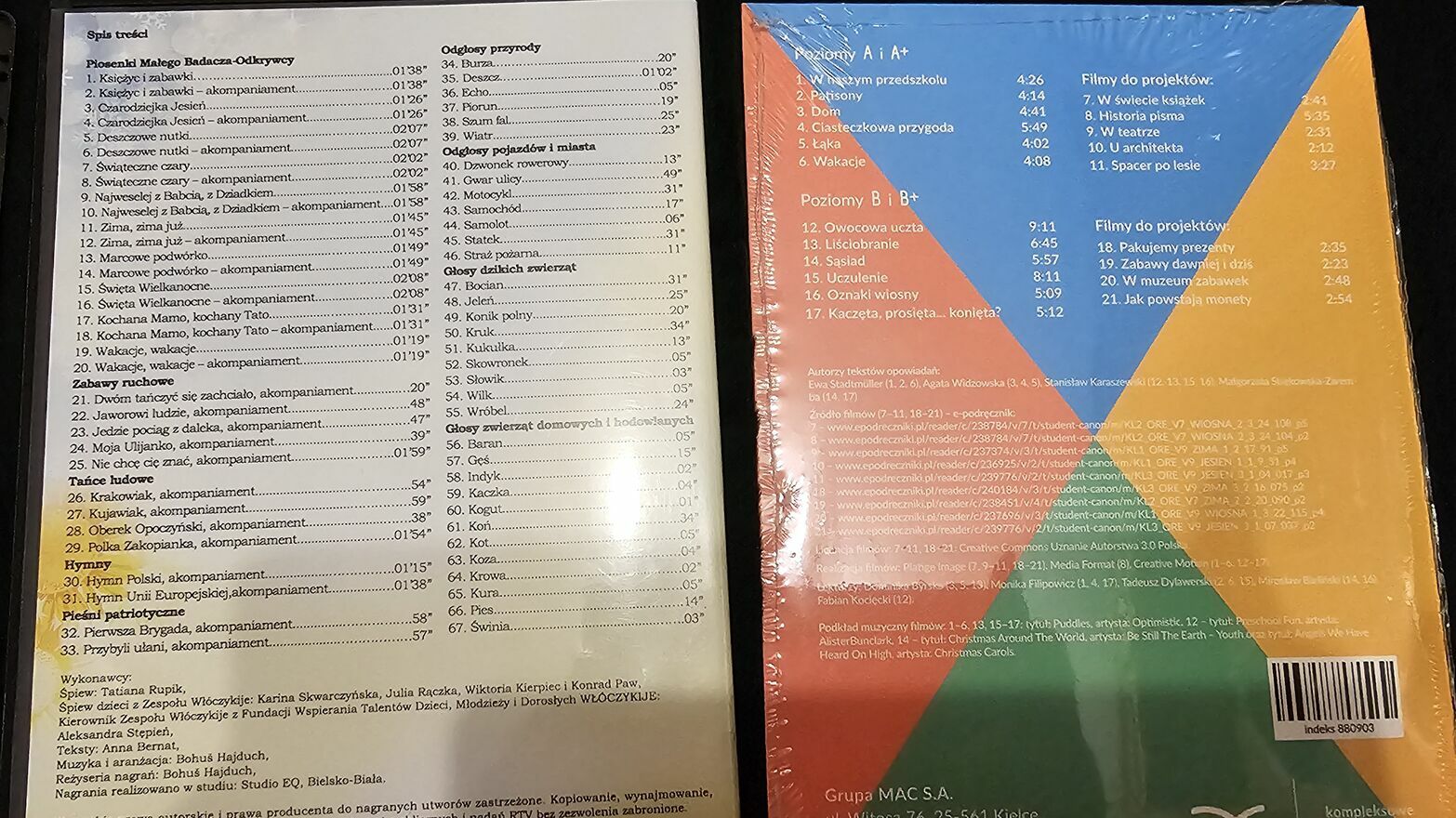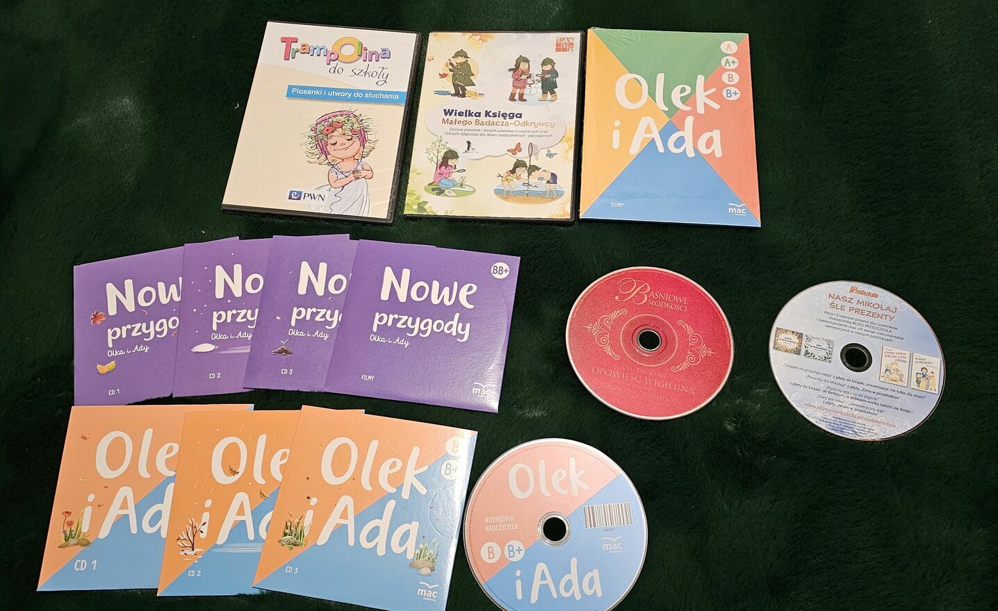 Sprzedam 11 płyt z piosenkami do przedszkola: "Nowe Przygody Olka i Ady", "Olek i Ada", Trampolina, "Wielka Księga Małego Badacza i Odkrywcy". W tym jedna płyta z bajką + niezbędnik nauczyciela. Razem 13 płyt.Sprawdź zainteresowanie tym ogłoszeniem
