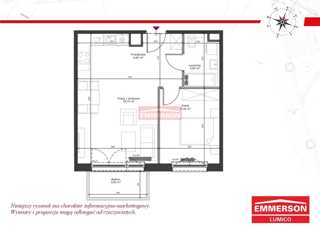 Funkcjonalne mieszkanie dwupokojowe z balkonem 3,93 m2.