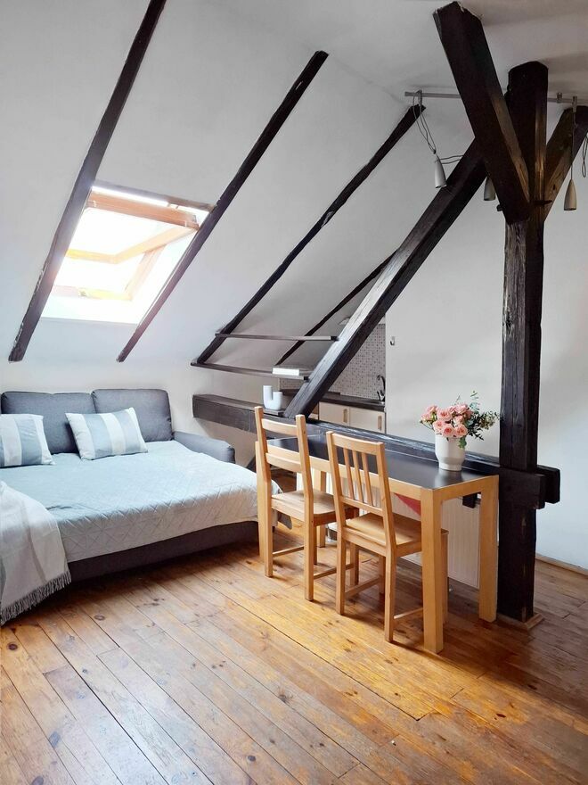 Mieszkanie idealne dla osoby pracującej lub pary, która chce mieszkać w ścisłym centrum miasta, a jednocześnie w spokojnej okolicy.