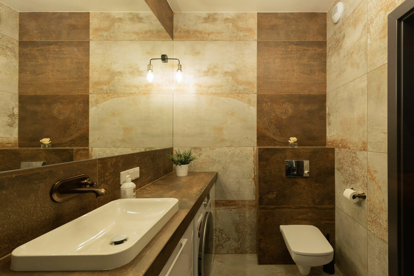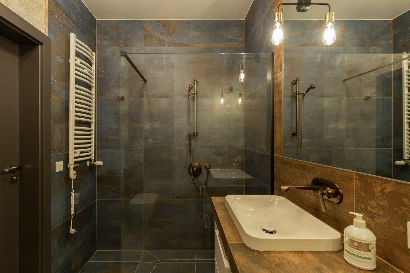 - Łazienki z WC – nowoczesna, wyposażona we wszystkie sprzęty