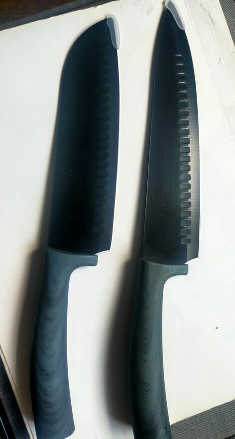 Noże marki Berlinger Haus są cenione jako produkty wysokiej jakości i trwałości. Noże ze stali nie rdzewnej, wygodne w użyciu. Przeznaczone do porcjowania mięs, ryb, warzyw. W komplecie: nóż szefa kuchni 20 cm /używany oraz santoku 17,5 cm /nieużywany.Sprawdź zainteresowanie tym ogłoszeniem