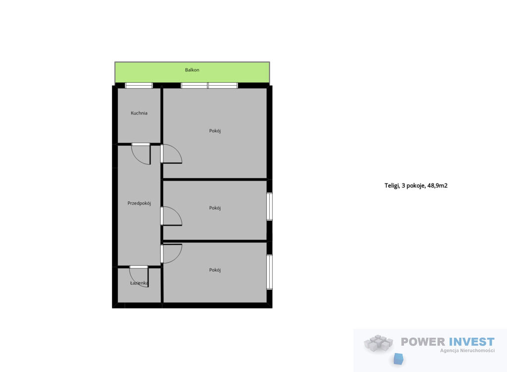 Powierzchnia nieruchomości to 48,9m2 i składa się na nią: