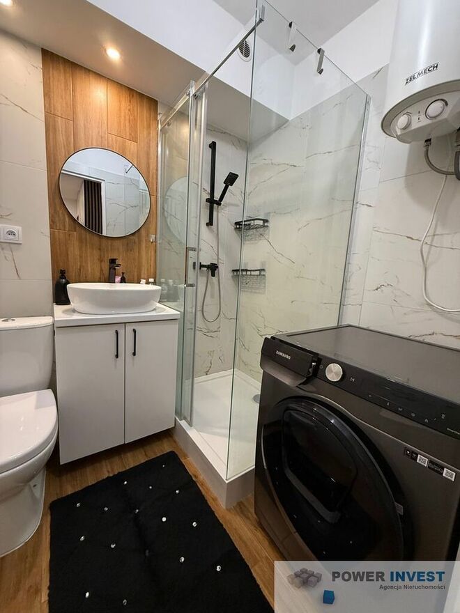 w zabudowie Beko, mikrofalówkę Whirlpool. W łazience znajduje się