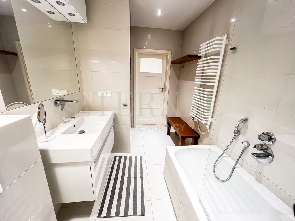 na balkon, dwóch niezależnych sypialni, eleganckiej łazienki z