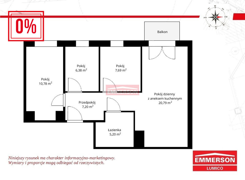 Emmerson oferuje:Mieszkanie 4 pokojowe z balkonem w budynku z windą na kameralnym