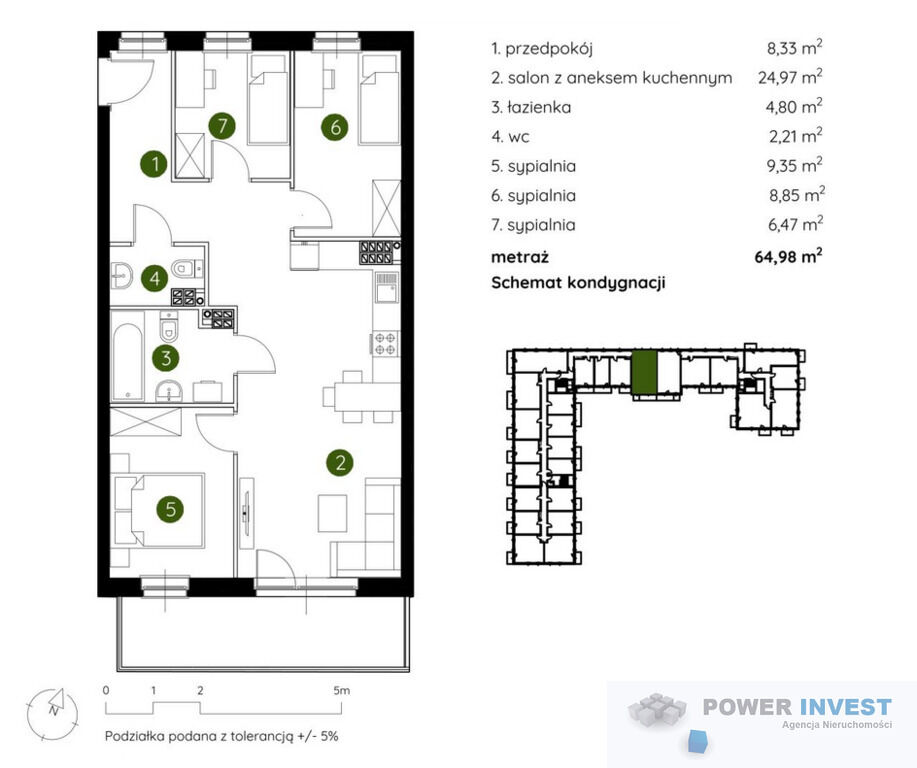 Mieszkanie znajduje się na 3 piętrze. Lokal ma powierzchnię 64,98