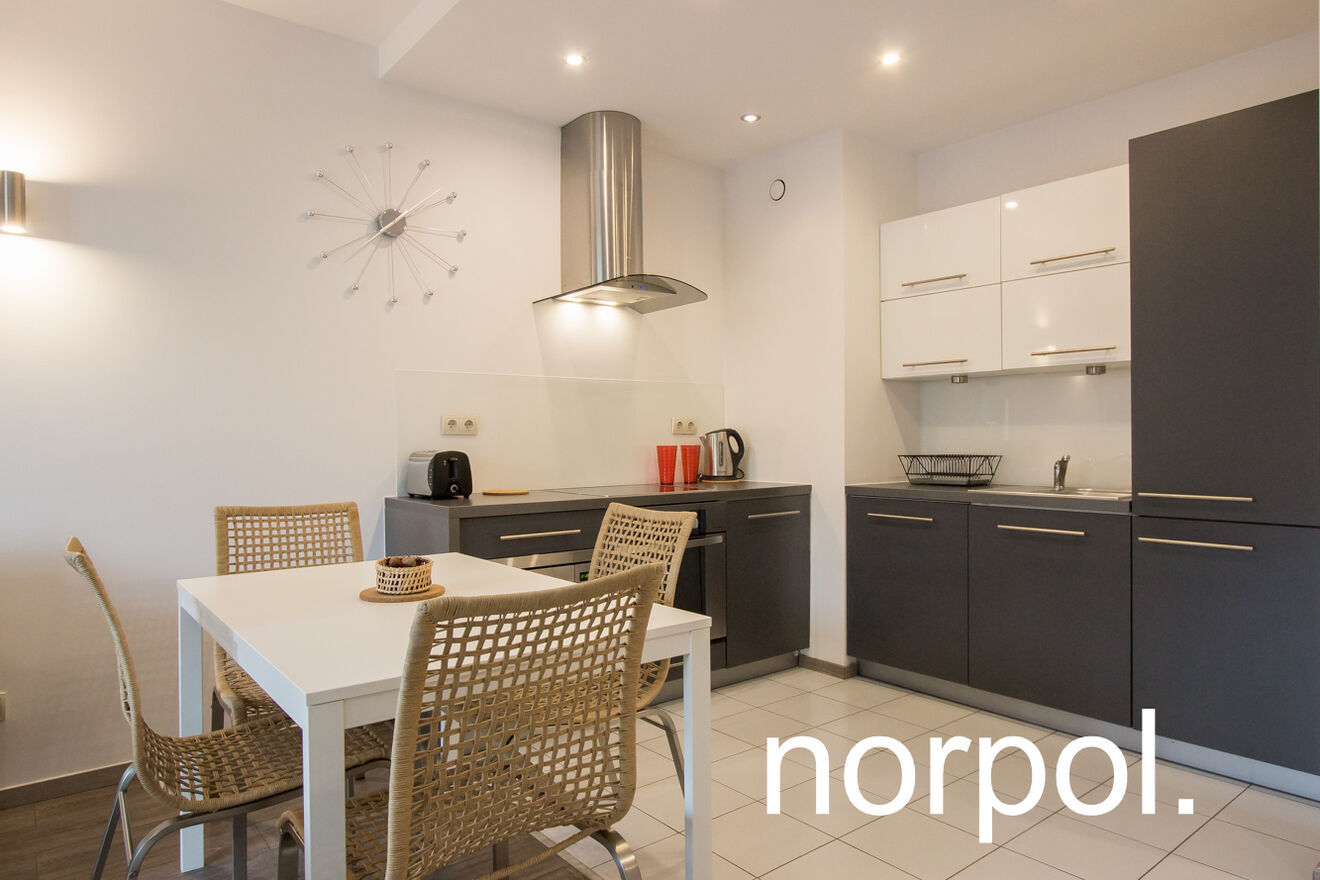 This 48.56 m² apartment is located on the 5th floor of a modern building. The well-thought-out layout includes a spacious living room with a fully equipped kitchenette, a comfortable bedroom, an elegant bathroom, a functional hallway, and a balcony perfect for relaxing. The interior is fully furnished and equipped, finished to a modern standard – ready to move in without any additional costs.