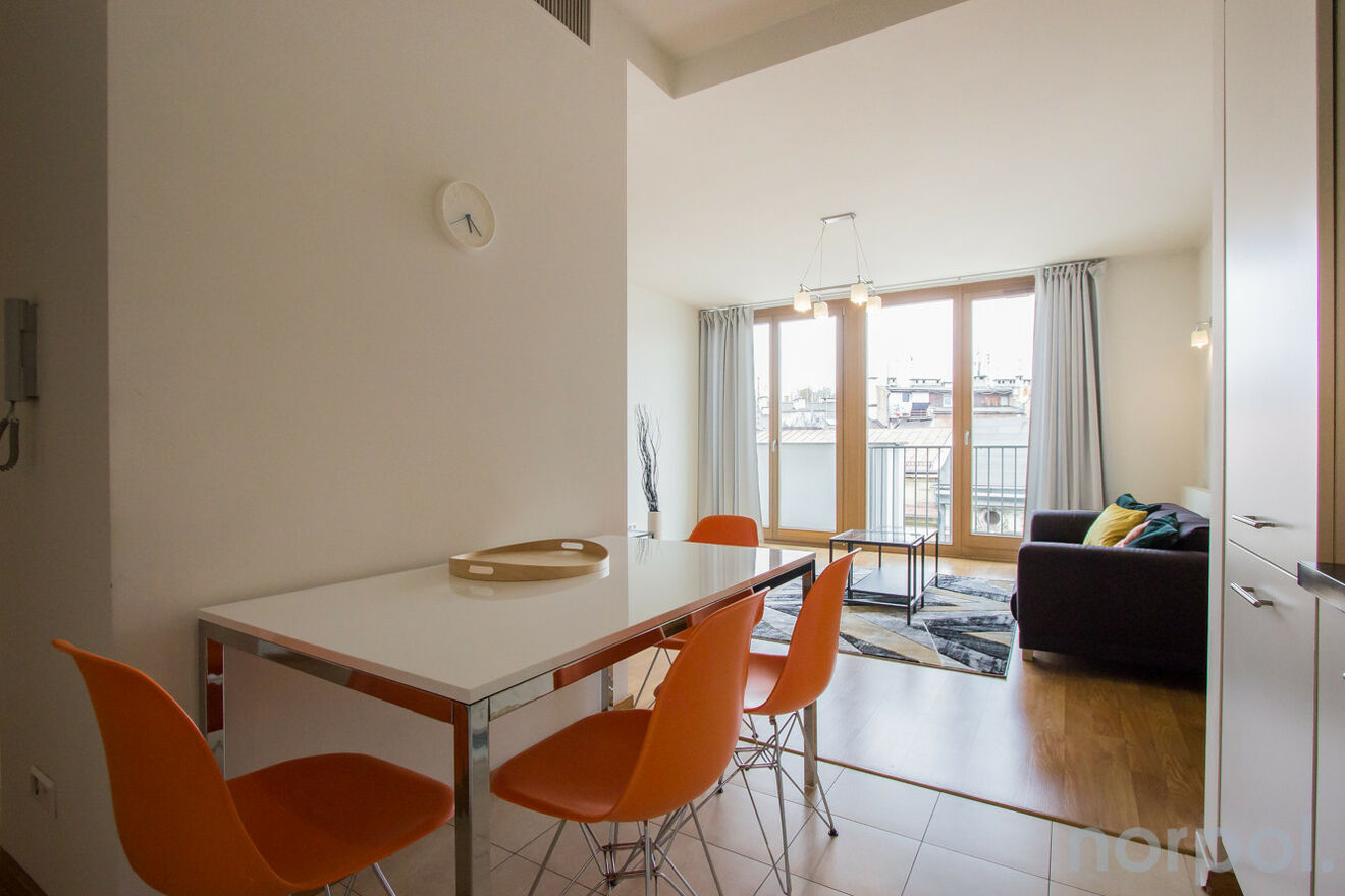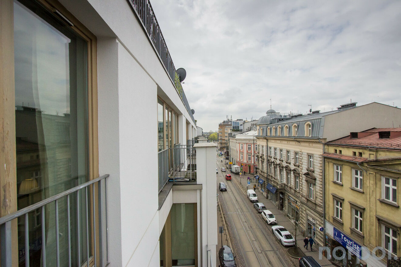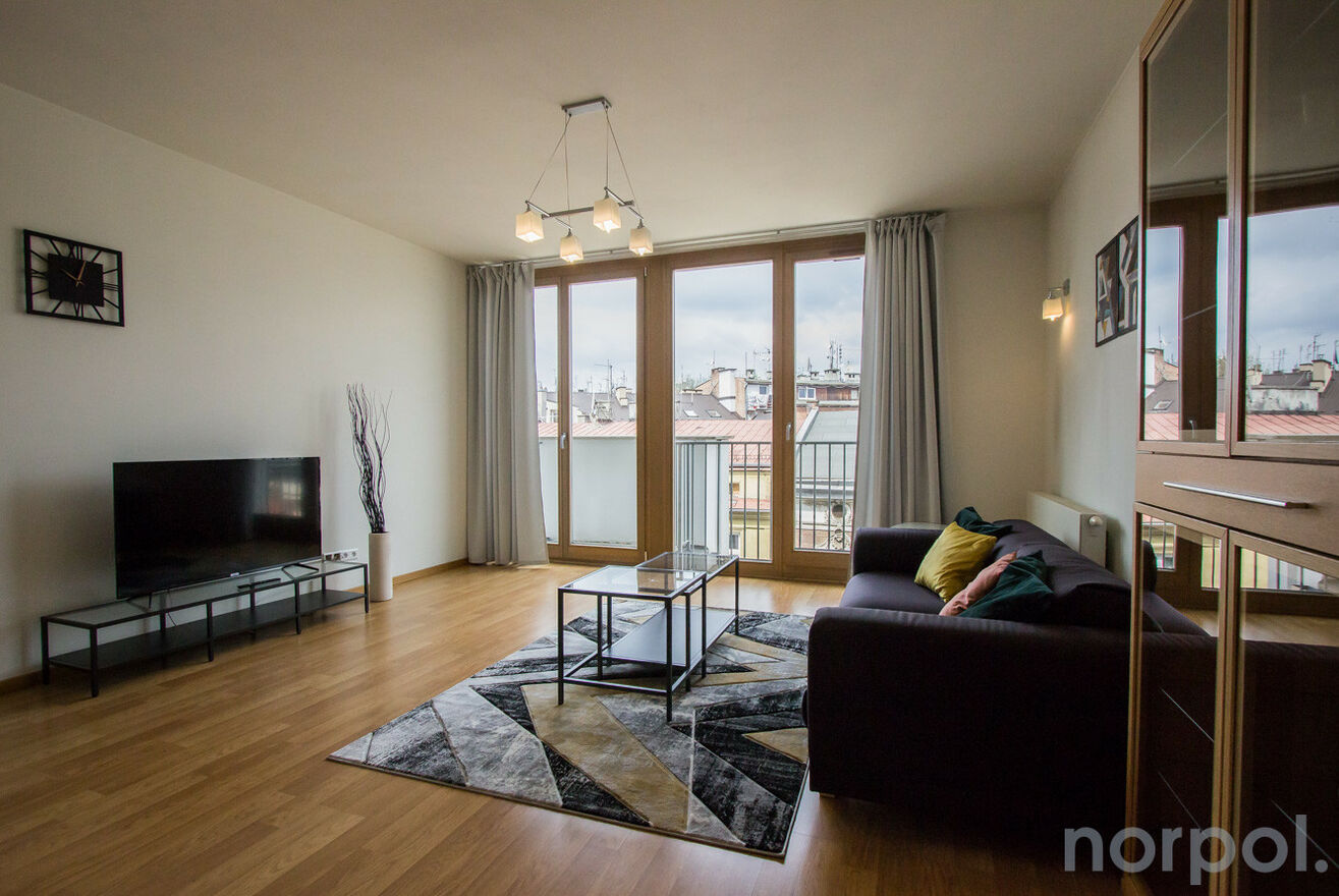 Nowoczesny i ekskluzywny kompleks apartamentów zlokalizowany w odległości 5 minut pieszo od Rynku Głównego i zamku na Wawelu, panoramiczne widoki na Stare Miasto i rzekę Wisłę. Sześciopiętrowy apartamentowiec z wewnętrznym patio i ogrodem. 170 luksusowych i komfortowych apartamentów wyposażonych w klimatyzację, windy, podziemny parking, balkony i tarasy. Wysoki standard wnętrz, przestronne i stylowe lobby, recepcja, miejsce spotkań, centrum biznesowe i konferencyjne, ekskluzywne centrum fitness z siłownią, sauną i jacuzzi.Apartament położony na 4 piętrze o powierzchni 53,27 m2 składa się z przestronnego salonu z otwartym aneksem kuchennym, sypialni, łazienki i przedpokoju, apartament posiada też balkon z widokiem na centrum miasta. Apartament jest w pełni umeblowany i wyposażony.