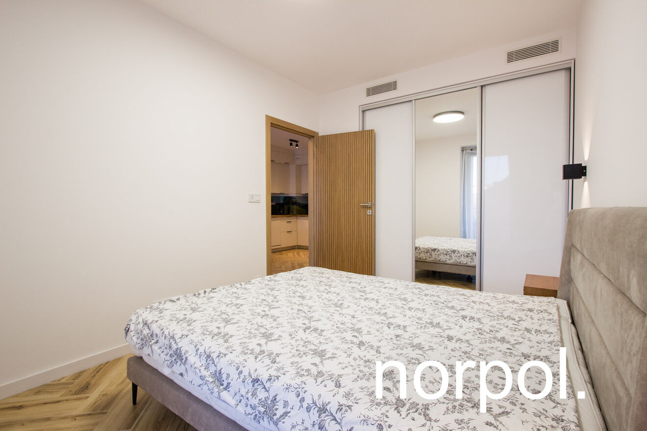 Mieszkanie o powierzchni 48,26 m2 znajduje się na drugim piętrze, składa się z pokoju dziennego z aneksem kuchennym oraz przestronnym balkonem z widokiem na ogród Księży Misjonarzy, sypialni, łazienki oraz hallu. Apartament jest w pełni umeblowany i wyposażony, posiada klimatyzację, ogrzewanie podłogowe oraz wideo-domofon. Za dodatkową opłatą dostępne jest miejsce parkingowe w garażu podziemnym.