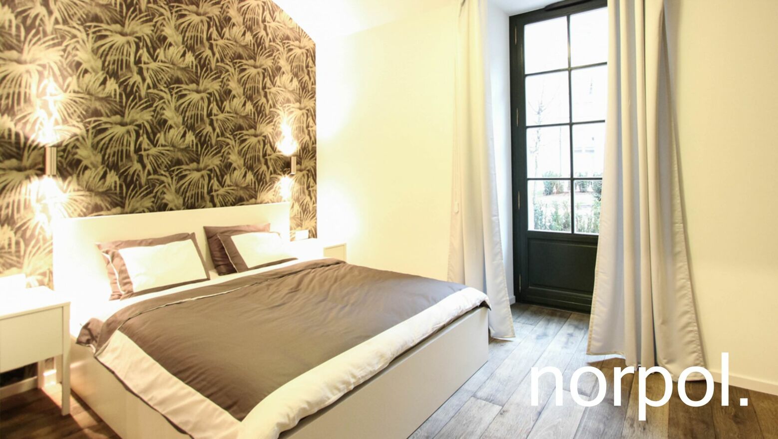 Mieszkanie typu STUDIO o metrażu 32,45 m2 znajduje się na parterze z widokiem na pięknie zaaranżowane wewnętrzne patio. Składa się z salonu z aneksem kuchennym, wydzielonej przesuwnymi drzwiami części sypialnej oraz z wyjściem na taras, łazienki i holu z szafą. Mieszkanie jest w pełni umeblowane i wyposażone w nowoczesnym stylu, posiada klimatyzację, ogrzewanie podłogowe oraz wideo-domofon.