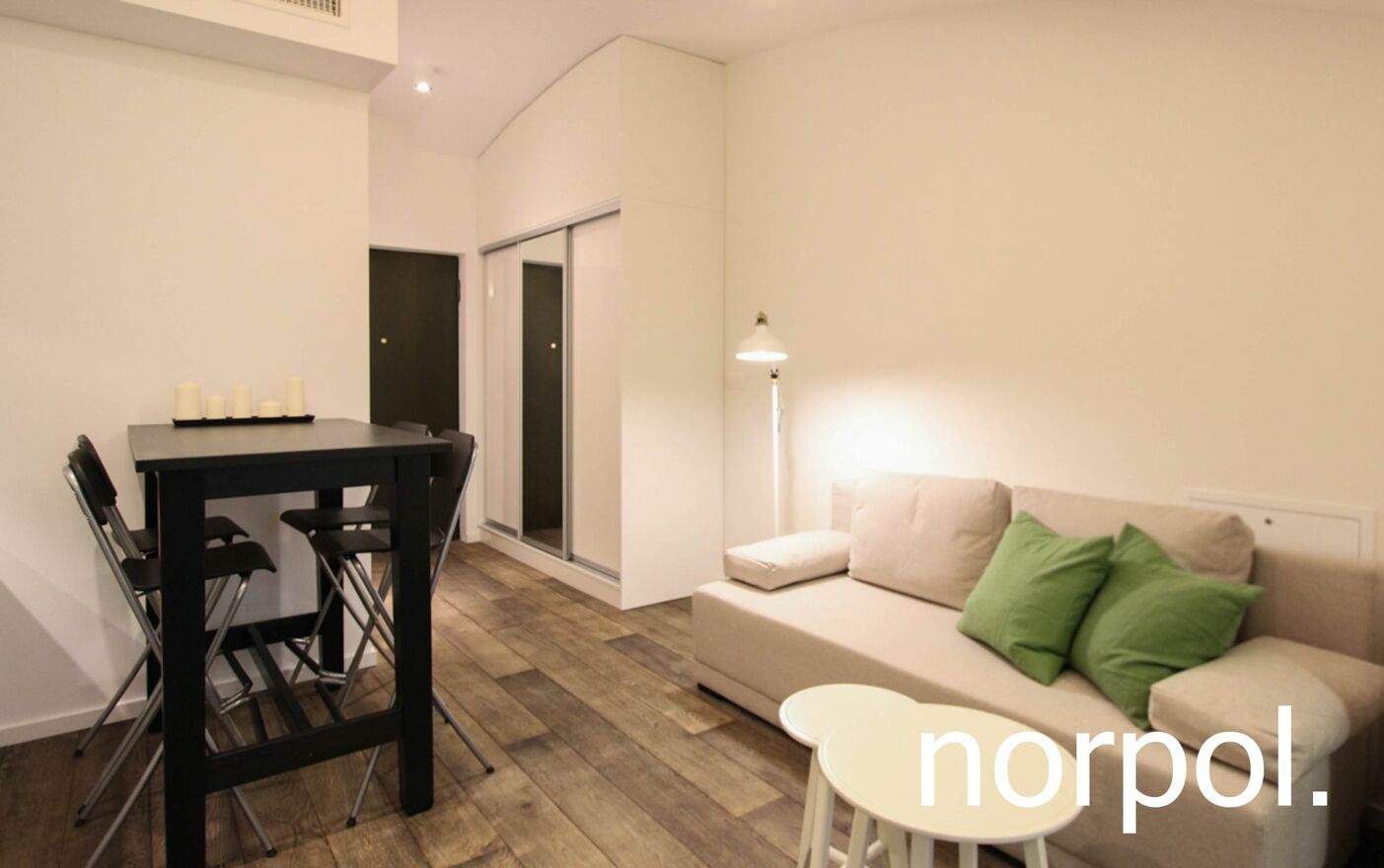 The STUDIO apartment with an area of 32.45 m2 is located on the ground floor with a view of the beautifully arranged interior patio. It consists of a living room with kitchenette, separated by sliding doors from the sleeping area and with access to the balcony, bathroom and hall. The apartment is fully furnished and equipped in a modern style, has air conditioning, underfloor heating and video intercom.
