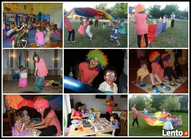 Zapewniamy rekwizyty niezbędne do zabawy z dziećmi (chusta animacyjna, tunel, baloniki do skręcania, bańki mydlane, farby do malowania twarzy, materiały plastyczne, itp.)