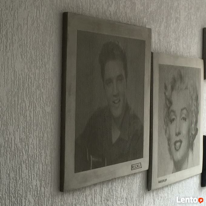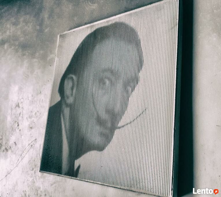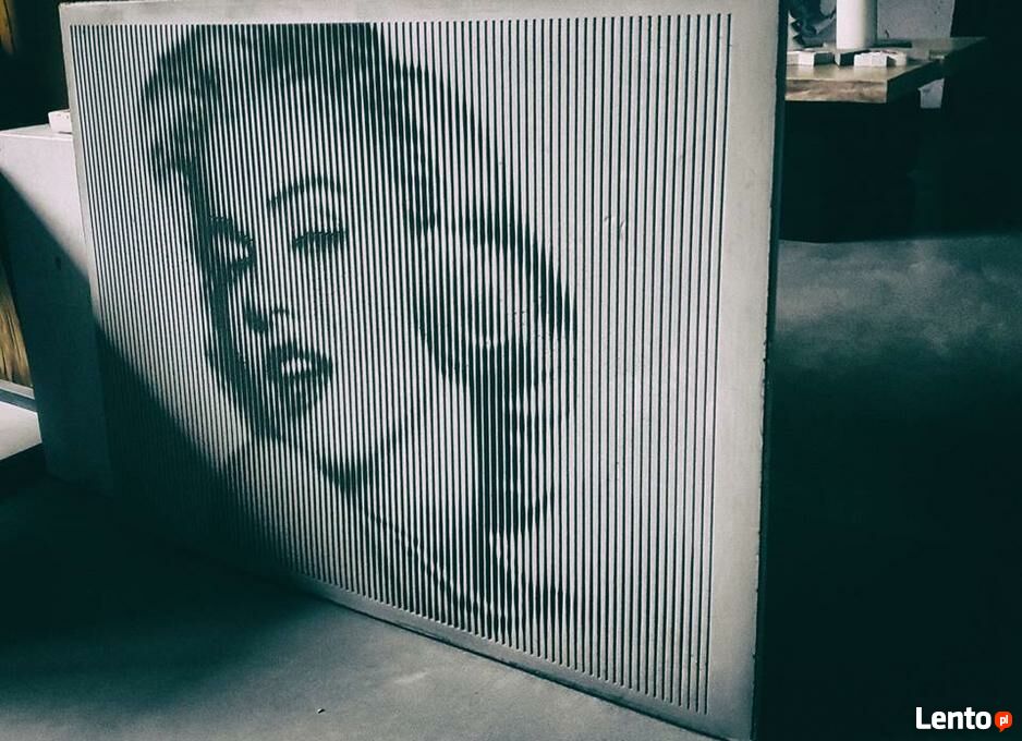 Przedmiotem aukcji jest płyta z betonu architektonicznego wykonana w technologii fotobetonu o wymiarach 68 x 52 z motywem ; Merlin , Presley , motyw rąk.Technologia Betonu fotograwerowanego daje ogromne możliwości architektom i projektantom.