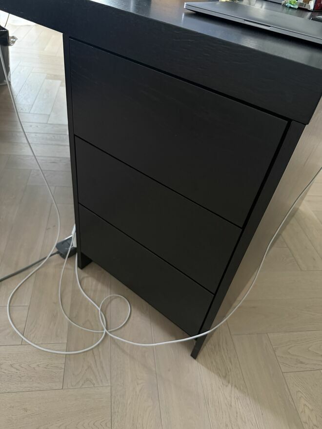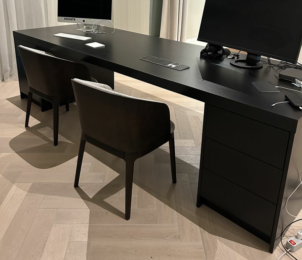 Solidne, ciemnobrązowe biurko dębowe o wymiarach 300x100x80 cm. Idealne do pracy w domu lub biurze. Posiada pojemne szuflady i szafki które pozwalaja na przechowywanie dokumentów i akcesoriów. Wykonane z wysokiej jakości materiałów, zapewniających trwałość i stabilność.Biurko było wykonane na zamówienie. Stan bardzo dobry. Biurko waży okolo 80kg