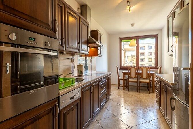 wyposażonej kuchni, łazienki i osobnej toalety.