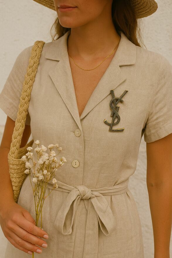 Broszka vintage w stylu premium – elegancki dodatek w klimacie high fashionEfektowna broszka z literami w kolorze postarzanego złota. Styl vintage, solidne wykonanie, modny design inspirowany ikonami światowego stylu. Idealna do marynarki, płaszcza, swetra czy torebki – nada charakteru każdej stylizacji.