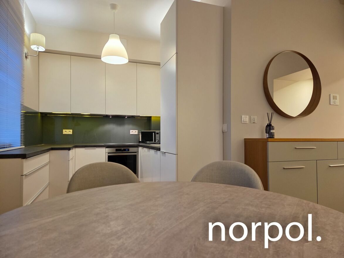 Mieszkanie jest w pełni umeblowane i wyposażone, wykończone w nowoczesnym, eleganckim stylu. Komfort codziennego użytkowania podnoszą takie udogodnienia jak klimatyzacja, ogrzewanie podłogowe oraz wideodomofon.