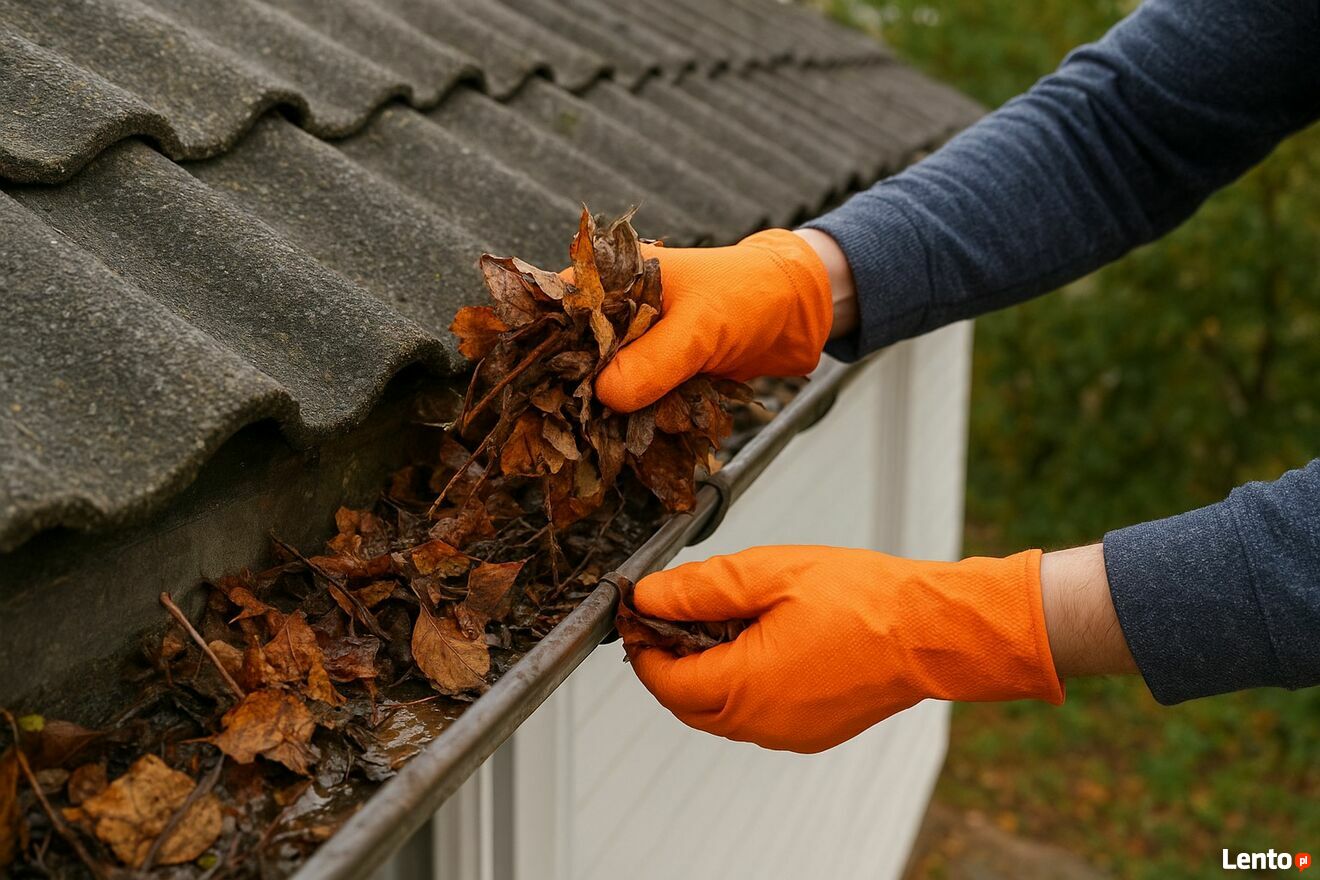 Oferujemy profesjonalne czyszczenie rynien z liści, gałęzi i innych zanieczyszczeń, które mogą blokować odpływ wody.
