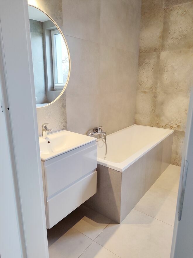 - w kuchni dostępne sprzęty AGD (lodówka z zamrażalnikiem, piekarnik, płyta grzewcza, duża zmywarka, okap )