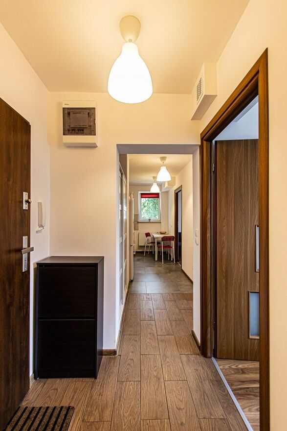 Przedpokój: dwie pojemne szafy, szafka na buty.