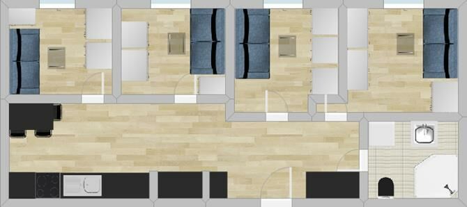 Czteropokojowe mieszkanie o powierzchni 56 m².