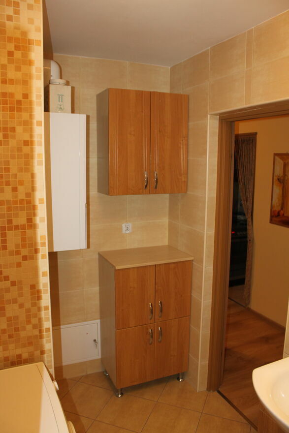 - łazienka z piecem gazowym 2 funkcyjnym z zamkniętą komorą spalania (max bezpieczeństwo domowników)-możliwość pełnego sterowania ogrzewaniem wody użytkowej i CO, umywalka, wanna, pralka, lustro,