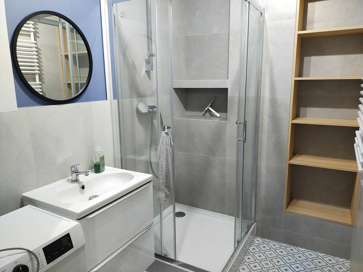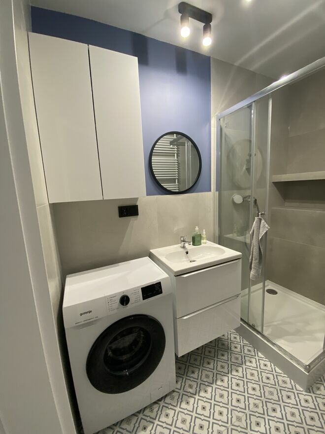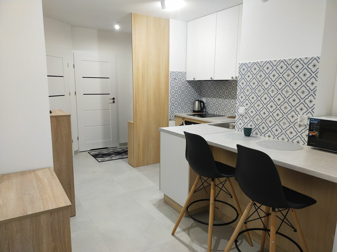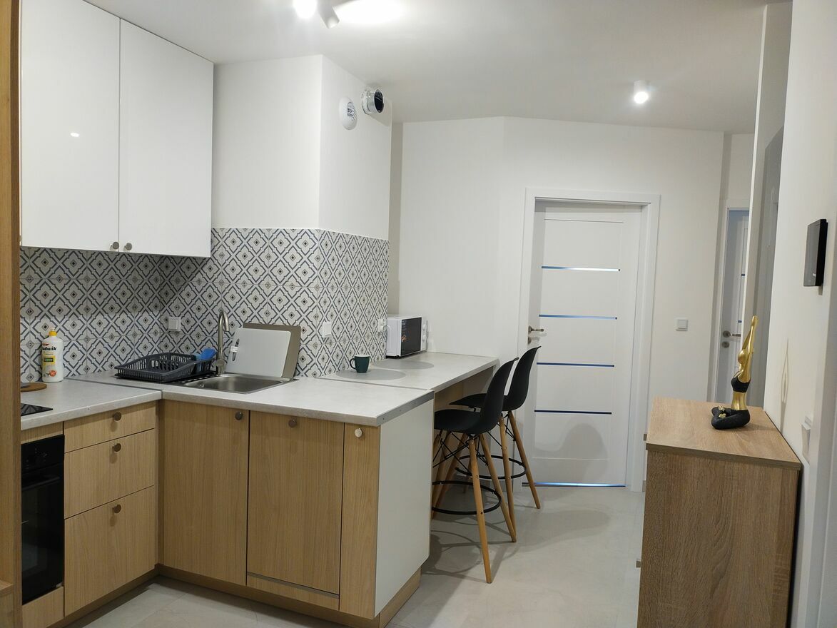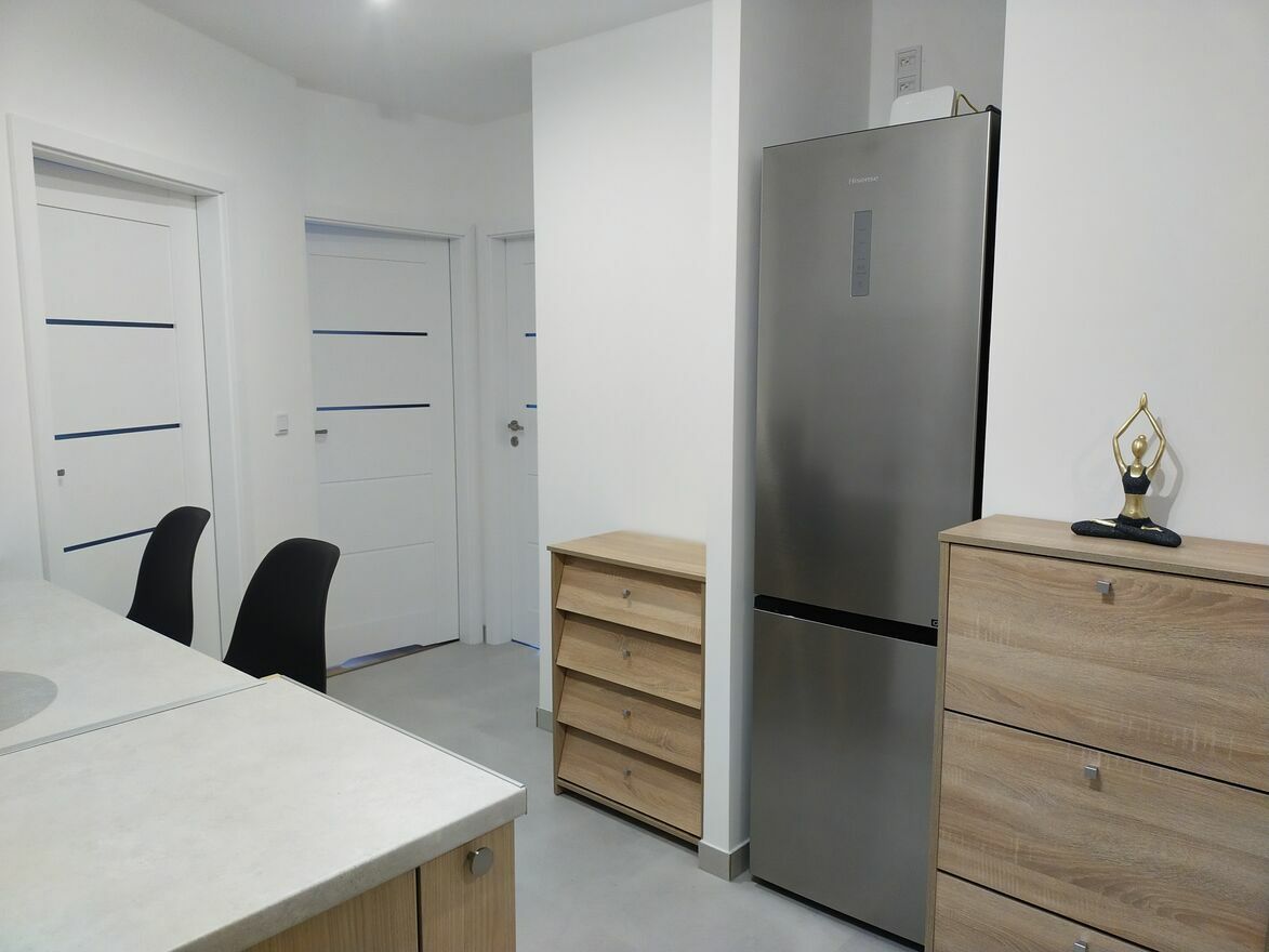 Nowy blok z 2025 roku, mieszkanie nowe, świeżo wykończone. W pełni wyposażone w pralkę, dużą lodówkę, piekarnik, zmywarkę, suszarkę na pranie, odkurzacz, czajnik elektryczny, mikrofalówkę, deskę do prasowania, żelazko. Do wyposażenia należą również podstawowe akcesoria kuchenne.