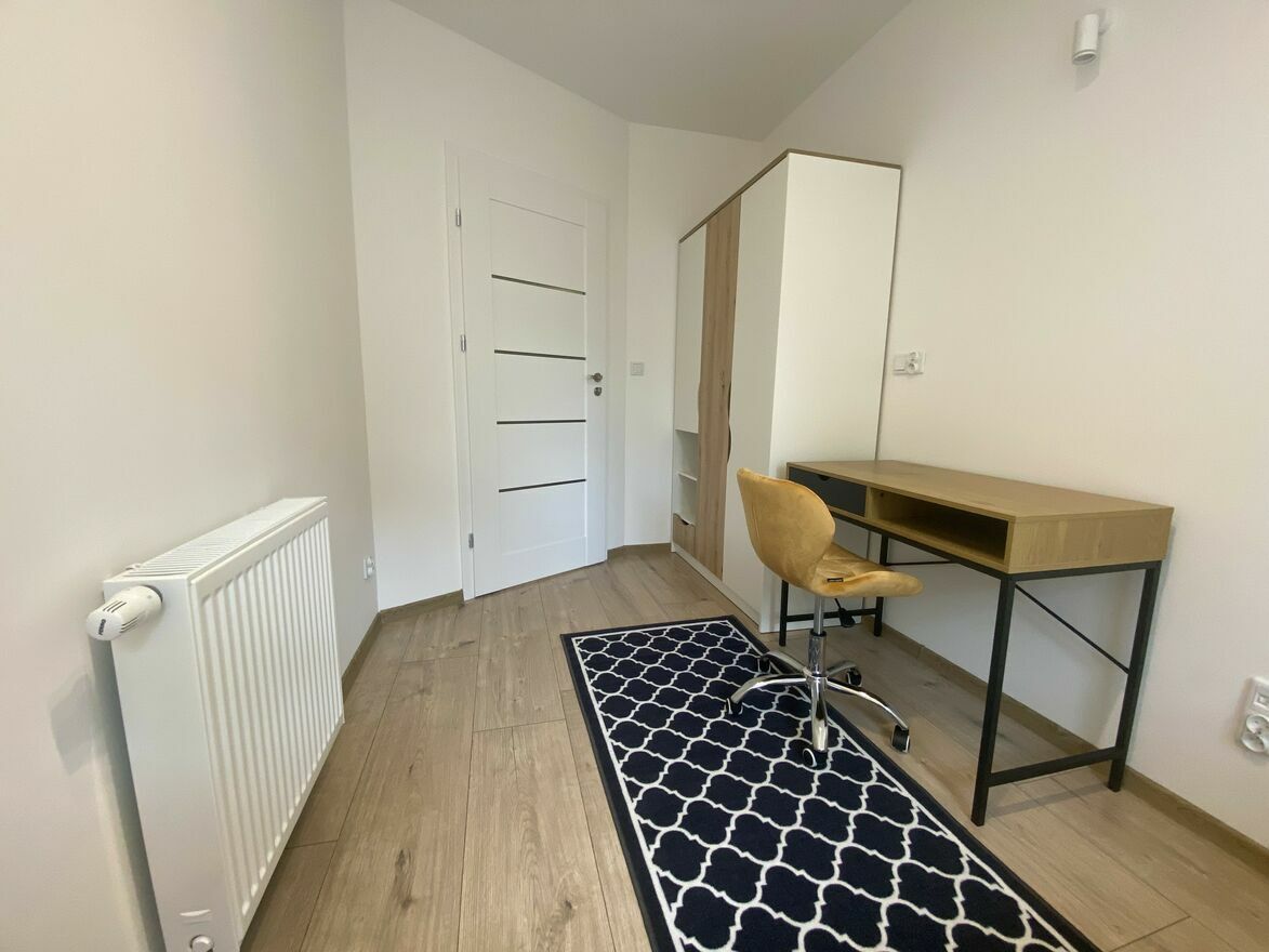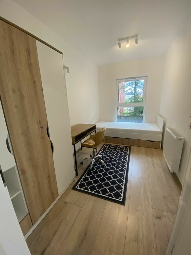 Do wynajęcia pokój jednoosobowy o powierzchni ok. 8,5m^2 w 4 pokojowym mieszkaniu w nowym bloku na osiedlu Ruczaj.Każdy pokój przytulny i w pełni umeblowany: pojemna szafa, łóżko ze schowkiem lub szufladami, biurko, krzesło. Pokój jasny, duże okna z roletami dzień-noc.