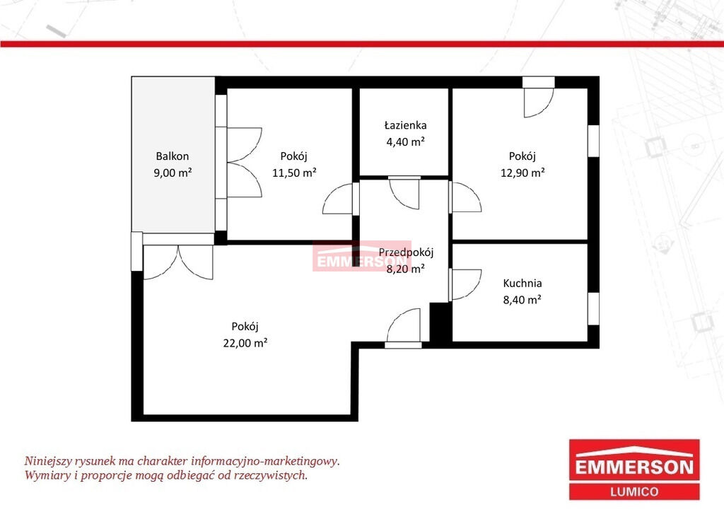 dwie oddzielne sypialnie oddzielna kuchniasalon z wyjściem na balkon
