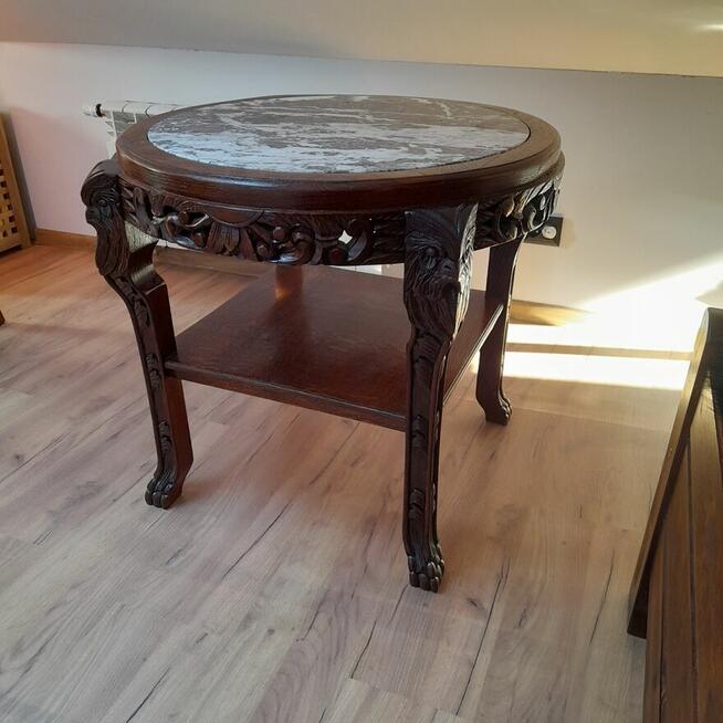 Sprzedam dębowy stół z blatem marmurowym. Stół wymiary fi 72 cm wys. 66,5 cm Stół dębowy z czasów powojennych ...