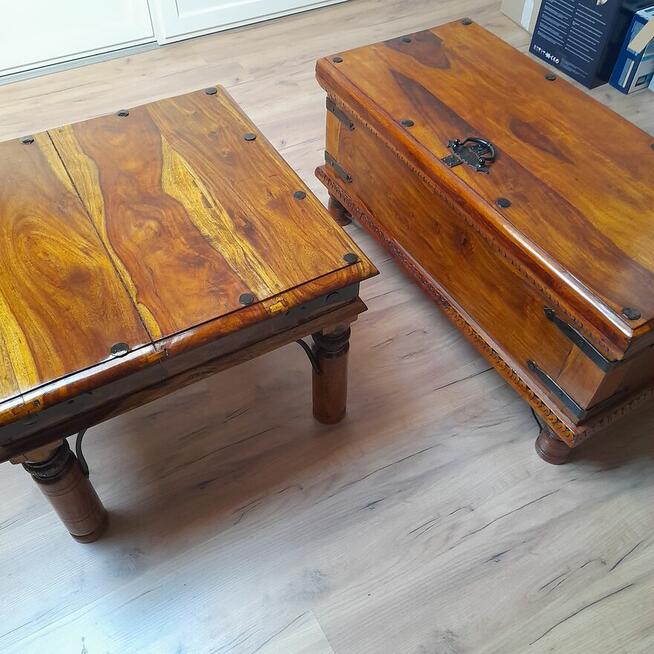 Do sprzedania piękny stolik kawowy i skrzynia Kolonialna Stolik60 x 60 cm, wys 45cm Skrzynia 42 x 90 cm wys 45 ...