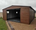Garaż blaszany o wymiarach 9 × 5 m + wiata 3 x 5 m, w kolorystyce drewnopodobnej. Garaż wyposażony w drzwi, okna i ...