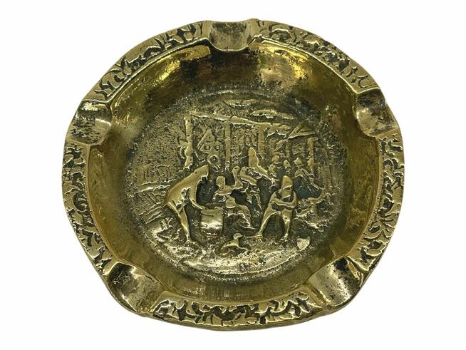 Mosiężna popielniczka Oberża • Średnica: 10 cm • Wysokość: 1,5 cm Możliwa wysyłka kurierem za pobraniem, koszt 20zł