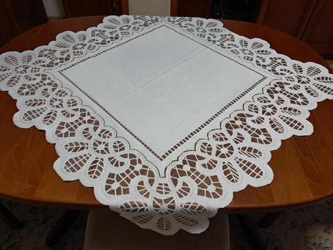 Do sprzedania biała, prostokątna, serweta żakardowa o wymiarach w cm: 100 x 95. Wewnątrz gładki kwadrat, obrzeża ...