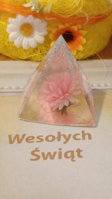 Do sprzedania PIRAMIDKA dekoracyjna w wyjątkowym dasing, z różowym kwiatkiem w środku, z żywicy epoksydowej Amadoria. ...