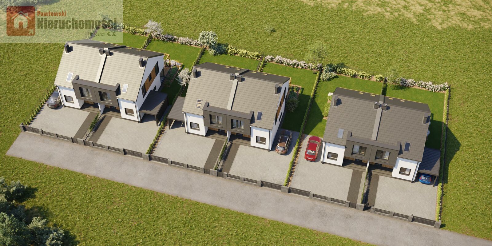 -możliwość wybudowania wiaty; na terenie każdego domu zmieszczą się 3 samochody
