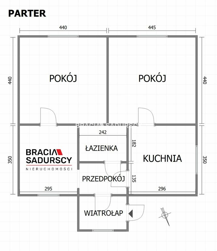 - Trzy oddzielne pokoje o pow. 16 / 14,5 / 12,5 m2 - ekspozycja płn i płd.