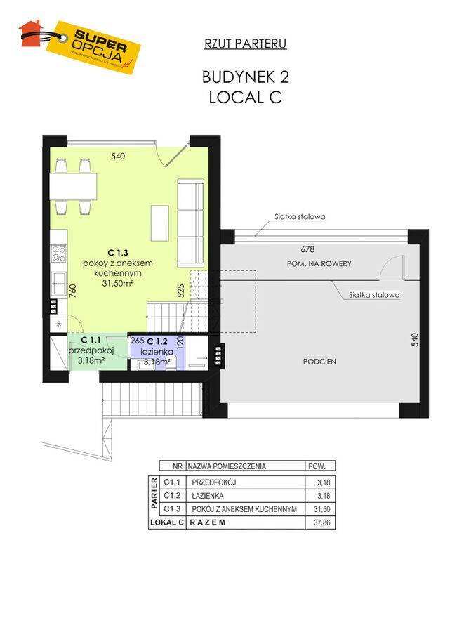 Możliwość aranżacji biura lub gabinetu z osobnym wejściem,