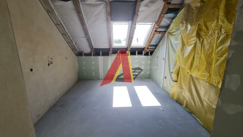 Poddasze 3 pokoje, łazienka, toaleta z miejscem na umywalkę kuchnia, korytarz. Częściowo wykończone / instalacja c.o. wody, instalacja elektryczna ,wylewki i tynki / i wymaga dalszych prac wykończeniowych.