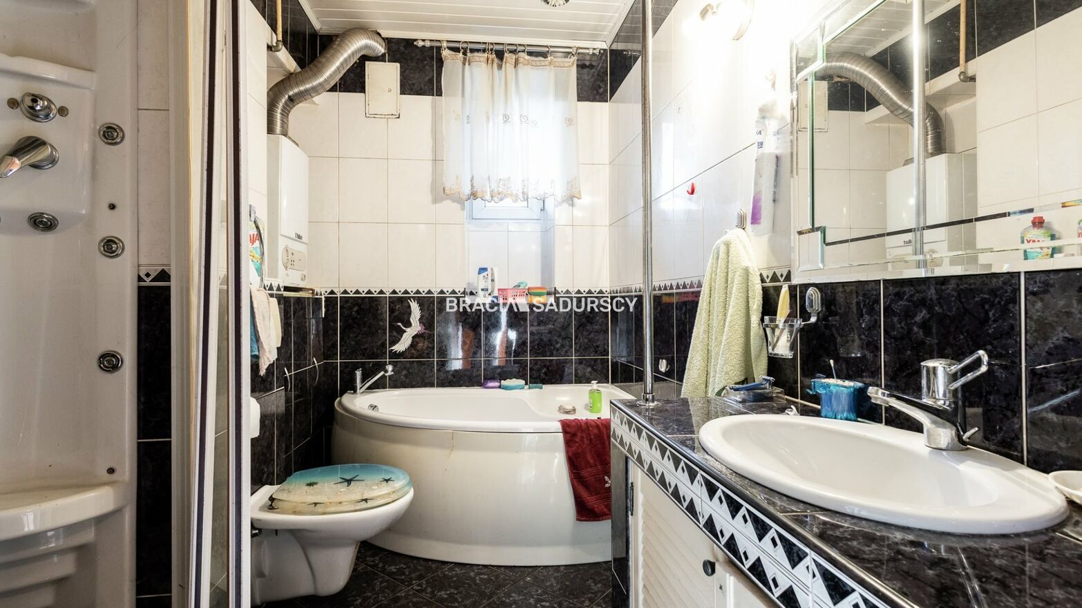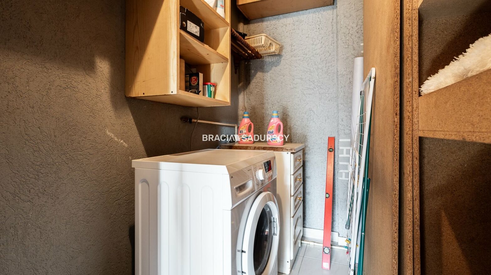 W bryle domu znajduje się garaż z uchylną bramą. Do domu przynależy udział w gruncie o powierzchni 287 m2.