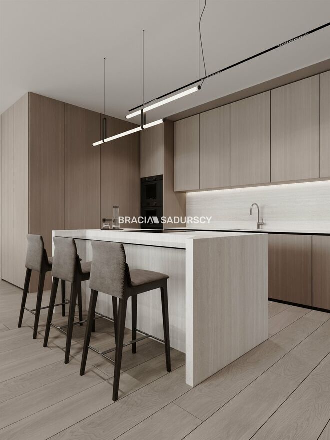 Wyposażenie kuchni: wyspa, szafki wiszące, szafki stojące, meble kuchenne na wymiar, zmywarka, zlewozmywak z baterią, zabudowa kuchenna, szafki kuchenne, płyta indukcyjna, piekarnik, okap kuchenny, lodówka, kuchenka