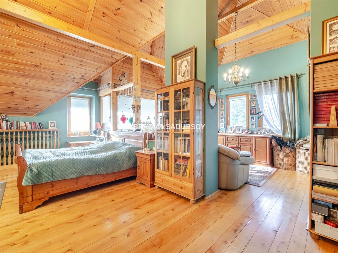 Przestronne poddasze posiada prywatną łazienkę z oknem a wysokość kondygnacji poddasza waha się od 1,5 m do 4,30 m w najwyższym punkcie.