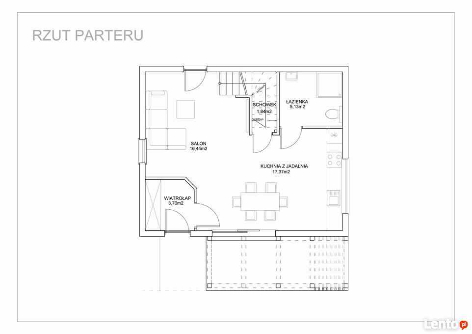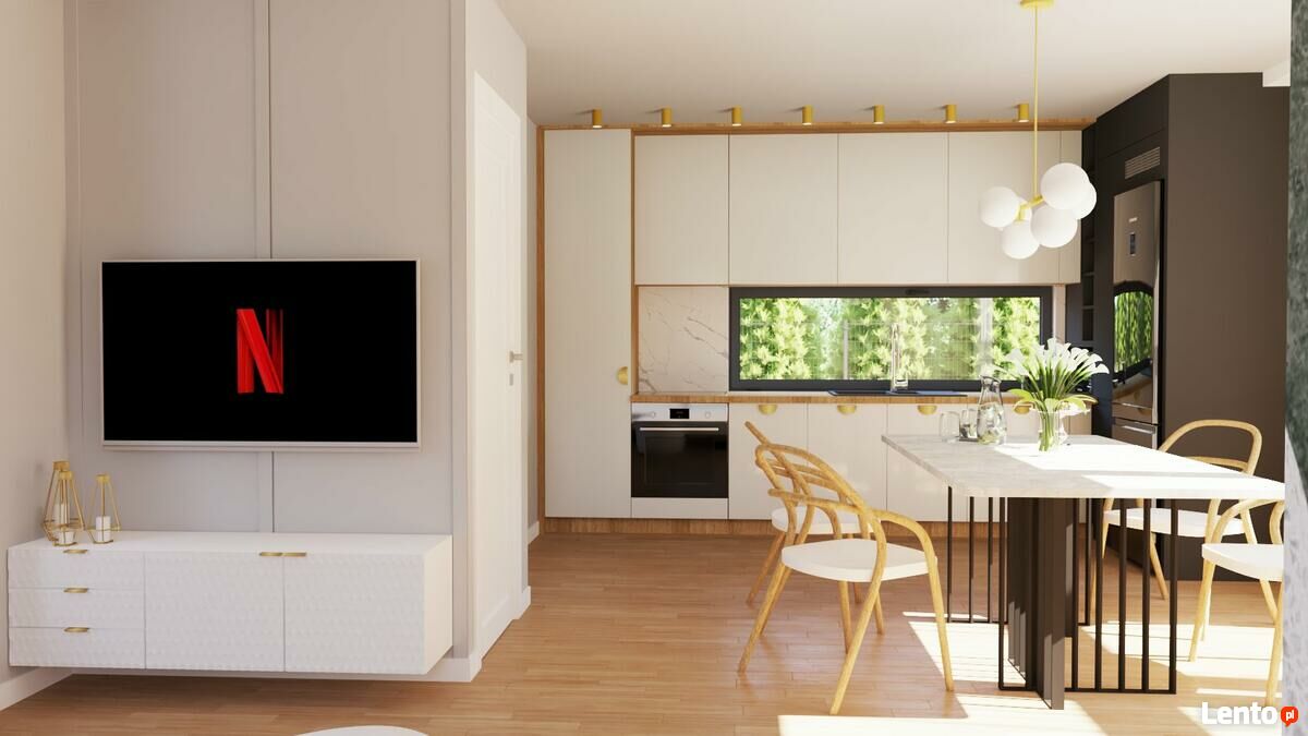 - funkcjonalny salon z wyjściem na ogród, jadalnia z wyjściem na taras główny, aneks kuchenny,
