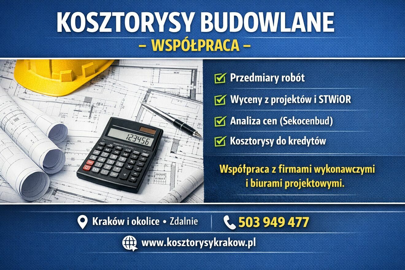 - kosztorysów na potrzeby uzyskania kredytów bankowych (na formularzu banku),