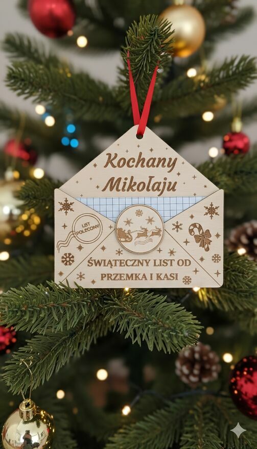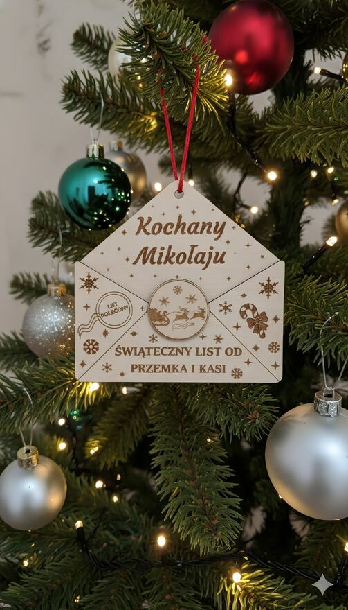 #święta #bożenarodzenie #mikołaj #drewniane #dekoracje #prezent #grawer #grawerowane #choinka #świąteczne #koperta #list