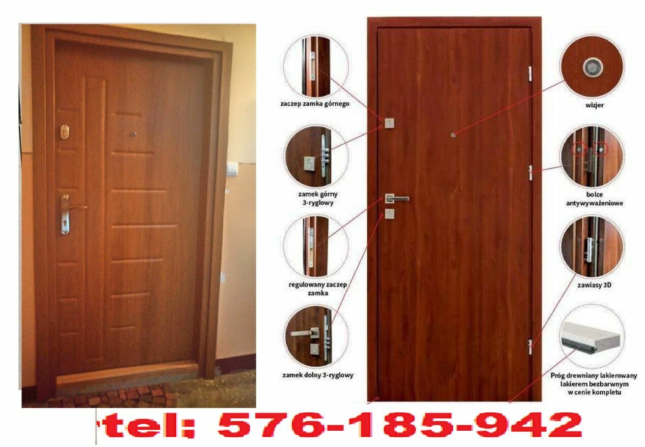 Oferuję sprzedaż antywłamaniowych akustycznych drzwi wejściowych do bloku i ocieplonych do domu