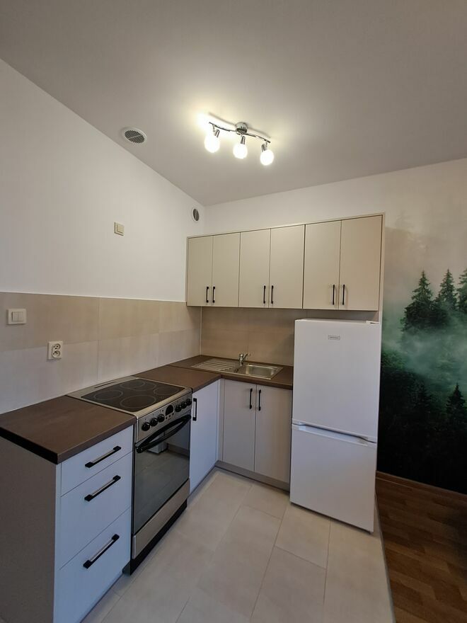 Do wynajęcia od zaraz na dłuższy czas dla osób pracujących czyste, nowe, bardzo ładne mieszkanie składające się z pokoju z kuchnią, przedpokoju, łazienki i pokoju - 40m2. Kuchnia i łazienka wyposażone (szafki kuchenne, kuchenka z piekarnikiem, lodówka, stół z krzesłami, pralka) w pokoju sofa, w przedpokoju duża szafa.Mieszkanie znajduje się na I piętrze budynku w spokojnej okolicy, bardzo dobra komunikacja - około 3 min. do przystanków tramwajowego i autobusowego przy ul.Kuklińskiego - 10 min. do Centrum.