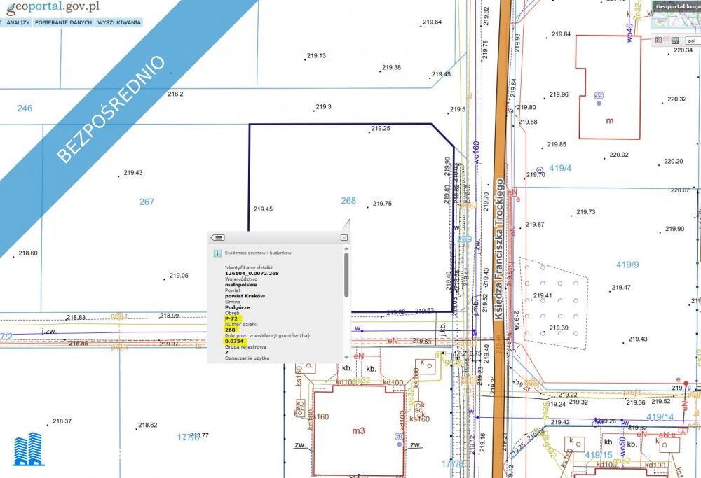 DZIAŁKA BUDOWLANA 7,54 AR + UDZIAŁ W DRODZE – KRAKÓW, Dębniki ul. ks. F. Trockiego