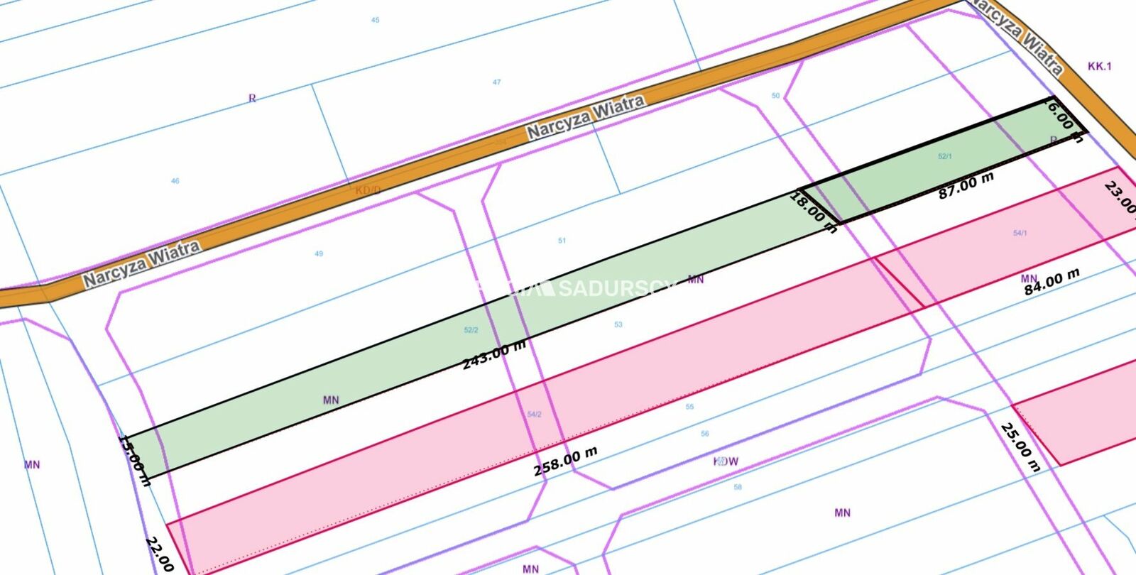 Wymiary działki: 22 x 258 m.