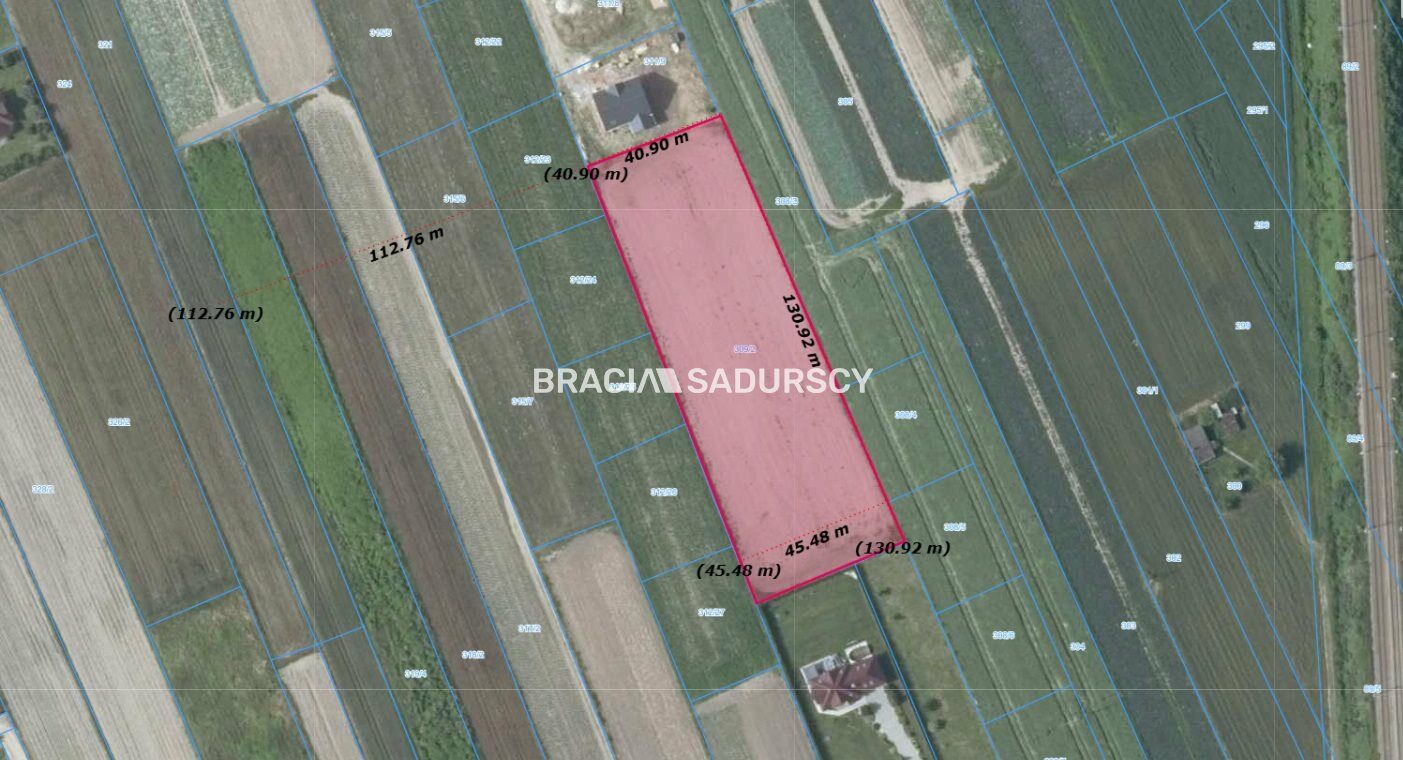 Działka o powierzchni 5657 m 2 i wymiarach 40X130 m . Działka niezabudowana, płaska, niezadrzewiona.